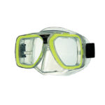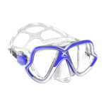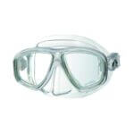 Low volume, crystal silicone mask with snug fit for easy clearing. Double feathered edge skirt and Plastic mask case included. Prescription lenses are available for both near sighted (negative prescriptions) and far sighted (positive prescriptions).