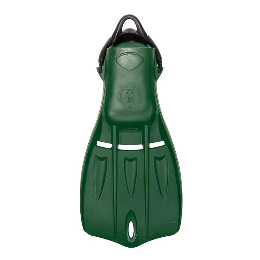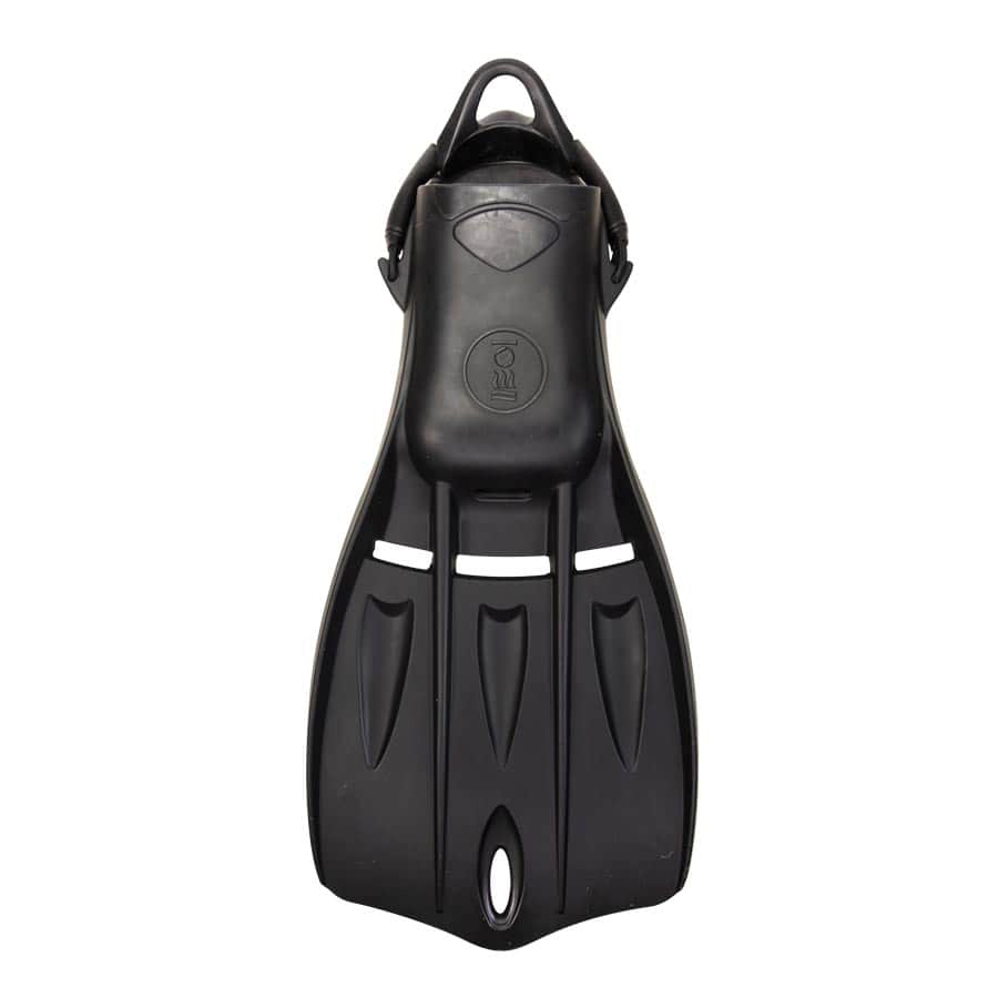 The Fourth Element Tech Stealth Fins were developed for military divers in mind with a slightly negative buoyancy characteristic but is suitable for all levels of diver looking for a high-performance rubber fin. The wider blade gives maneuverability without compromising the power which is there when needed, while the shorter length improves agility and makes stowing the fins for transport more convenient. With no metal parts and double bungee cord replacing the traditional spring strap.