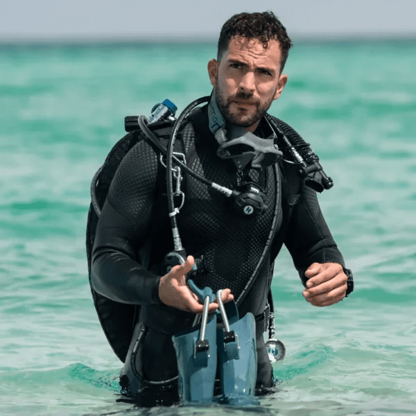 The abrasion-resistant knee pads and back heel notch offer durability and ease of use, ideal for divers moving between gear stations or boats.