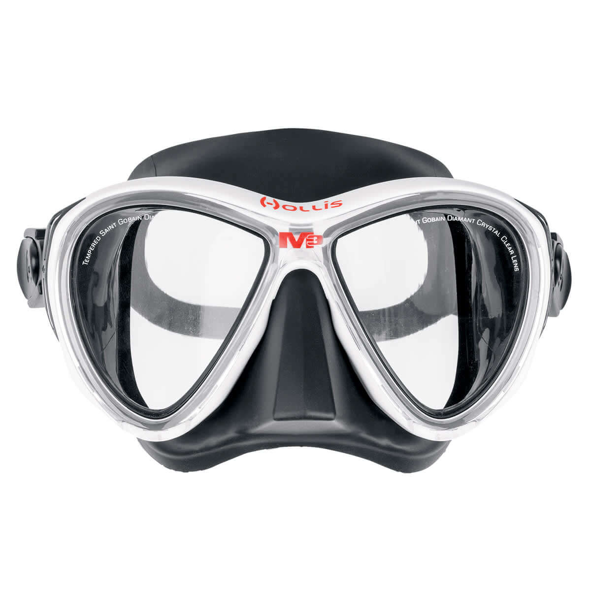 The Hollis M3 Mask provides distortion-free vision and a superior fit. The low-profile design uses a rigid frame and two lenses with UltraClear glass. The low iron content produces a higher light transmittance and a reduced green tint inherent in other glasses. This makes the lenses distortion free and helps improve color and visibility in low light conditions underwater.