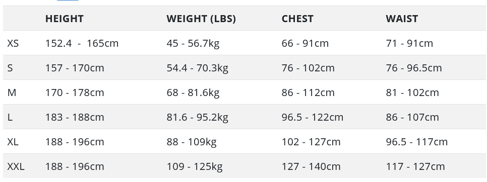 Lift capacity: SM, MD 25 lb; LG, XL, XXL 29 lb