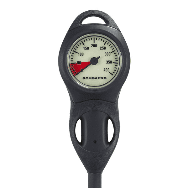 A pressure gauge that is compact and reliable makes for easy diving. This economical plastic-case gauge comes complete with a U-Line rubber boot and HP hose.