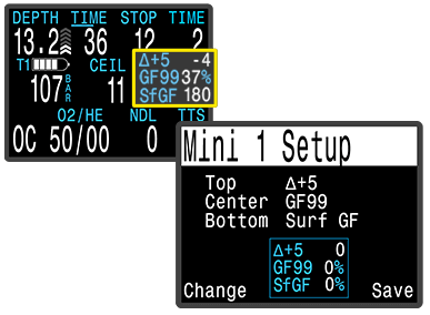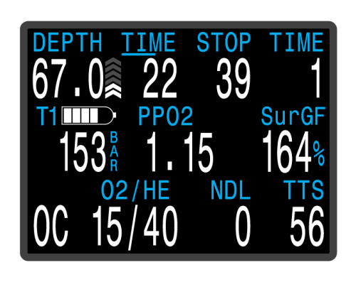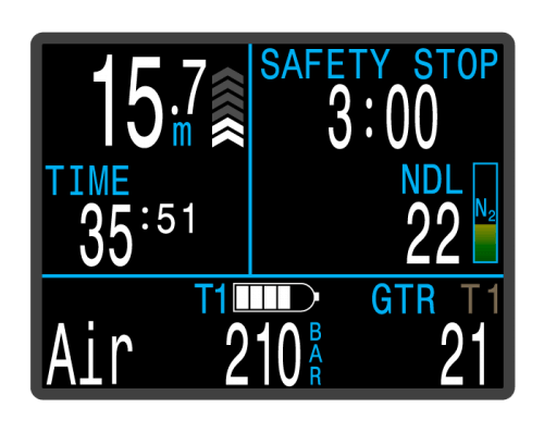 A strong vibration customizable alert system draws attention at critical moments of the dive.