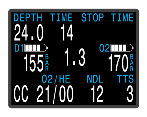 The Perdix 2 is capable of displaying tank pressure in all modes