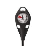 The Mares Mission 1 Pressure Gauge combines durability and functionality for a reliable diving experience. The brass case and technopolymer window ensure sturdiness, while the phosphorescent dial enhances readability. Colors intuitively indicate tank pressure, and the protective thermoplastic elastomer console adds resilience. Three large eyelets provide secure attachment points and the grip area ensures easy handling.